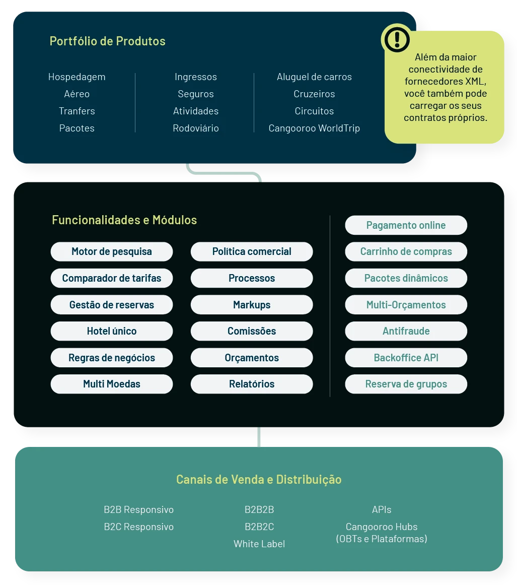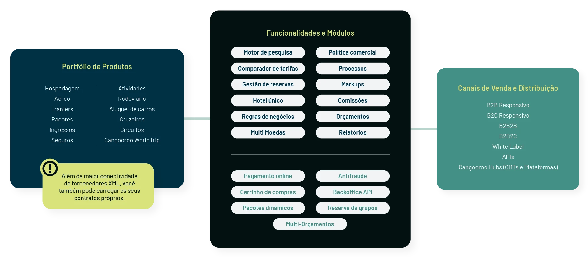 O Cangooroo é um agregador de produtos e serviços turísticos que engloba os principais fornecedores de hospedagem, voos, transportes terrestres, cruzeiros, receptivo e muito mais.